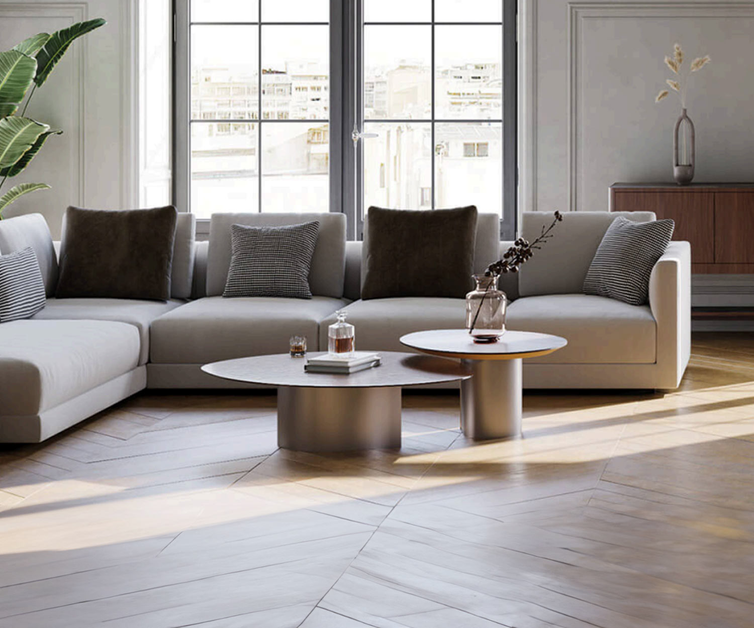 Het tafelblad met houtfineer van de dakry 006 design salontafel van al2 bestaat uit een MDF-plaat afgewerkt met exclusief Amerikaans notenhout of zwart gebeitst eikenhout. Het keramische tafelblad is verkrijgbaar in elegant Calacatta Oro of Marquina Black. Het glazen tafelblad heeft een elegante bronzen kleur die licht getint en doorschijnend is. Het oppervlak is getextureerd of gegolfd, wat bekend staat als de "fusion" afwerking.
