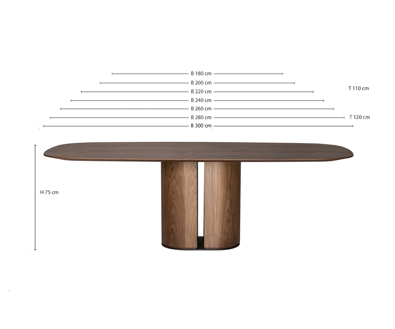 e tafelpoot is verkrijgbaar in hetzelfde fineer, wat de tafel een harmonieuze, stijlvolle uitstraling geeft.