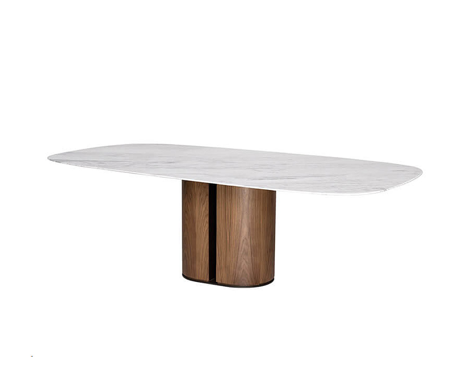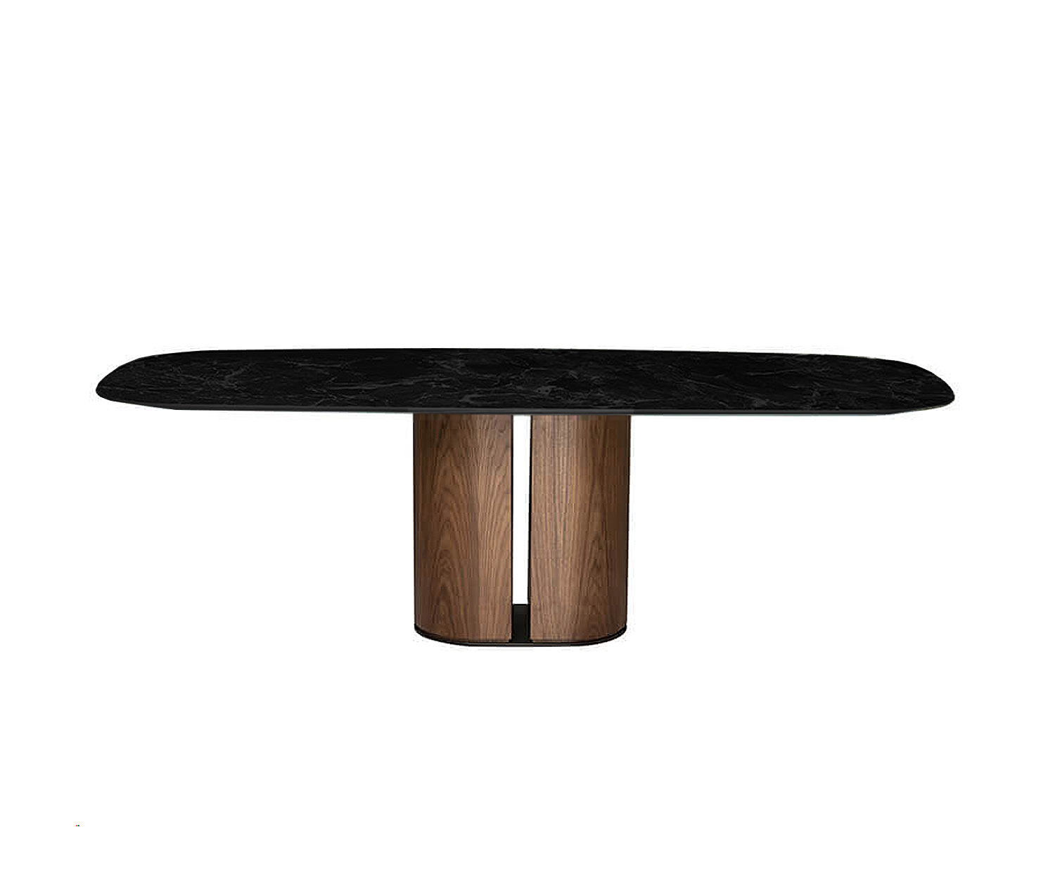 Voor het keramische tafelblad kun je kiezen tussen de eleganteMarquina zwarte en Carrara witte versies. In beide gevallen is het onderstel afgewerkt met walnootfineer, wat de luxueuze uitstraling van de tafel nog meer benadrukt.Ideaal voor verfijnde eisen en modern design - de AL2 EL-IT C 001 eettafel is een echte highlight in elke uitvoering en past perfect bij je verfijnde stijl.