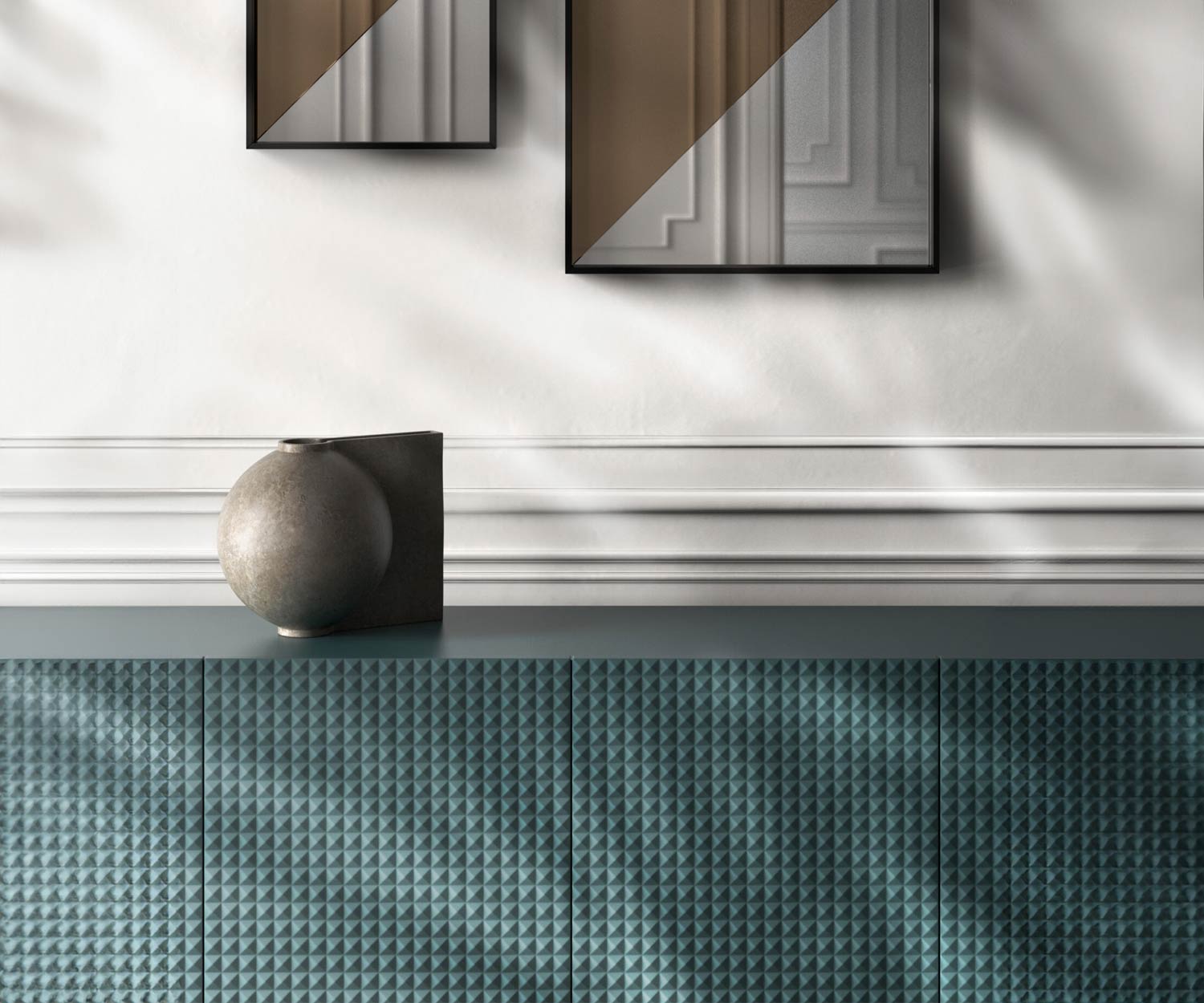 . Deze unieke structuur brengt een exclusieve luxe sfeer in een moderne woonkamer. Het Spin highboard past bij het design van het Capo d'Opera Spin dressoir.
