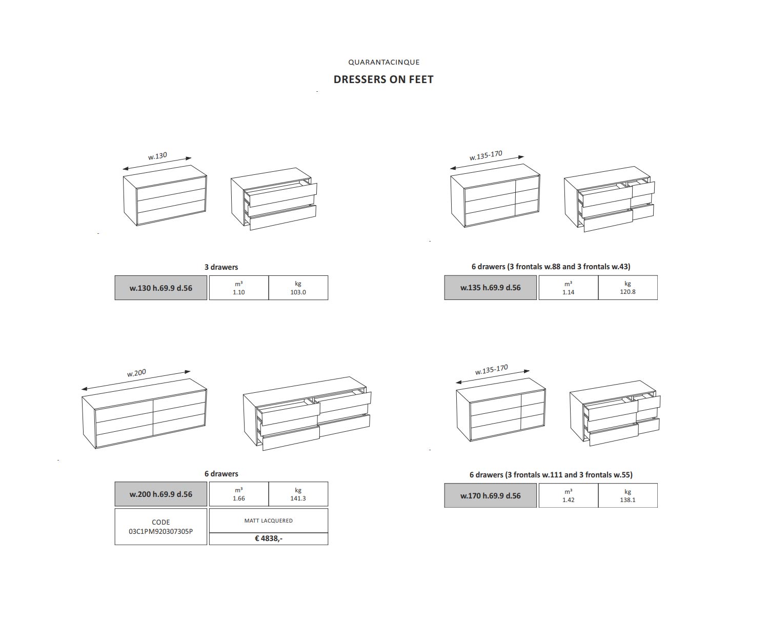 La commode design Capo d'Opera Quarantacinque est disponible dans les dimensions :