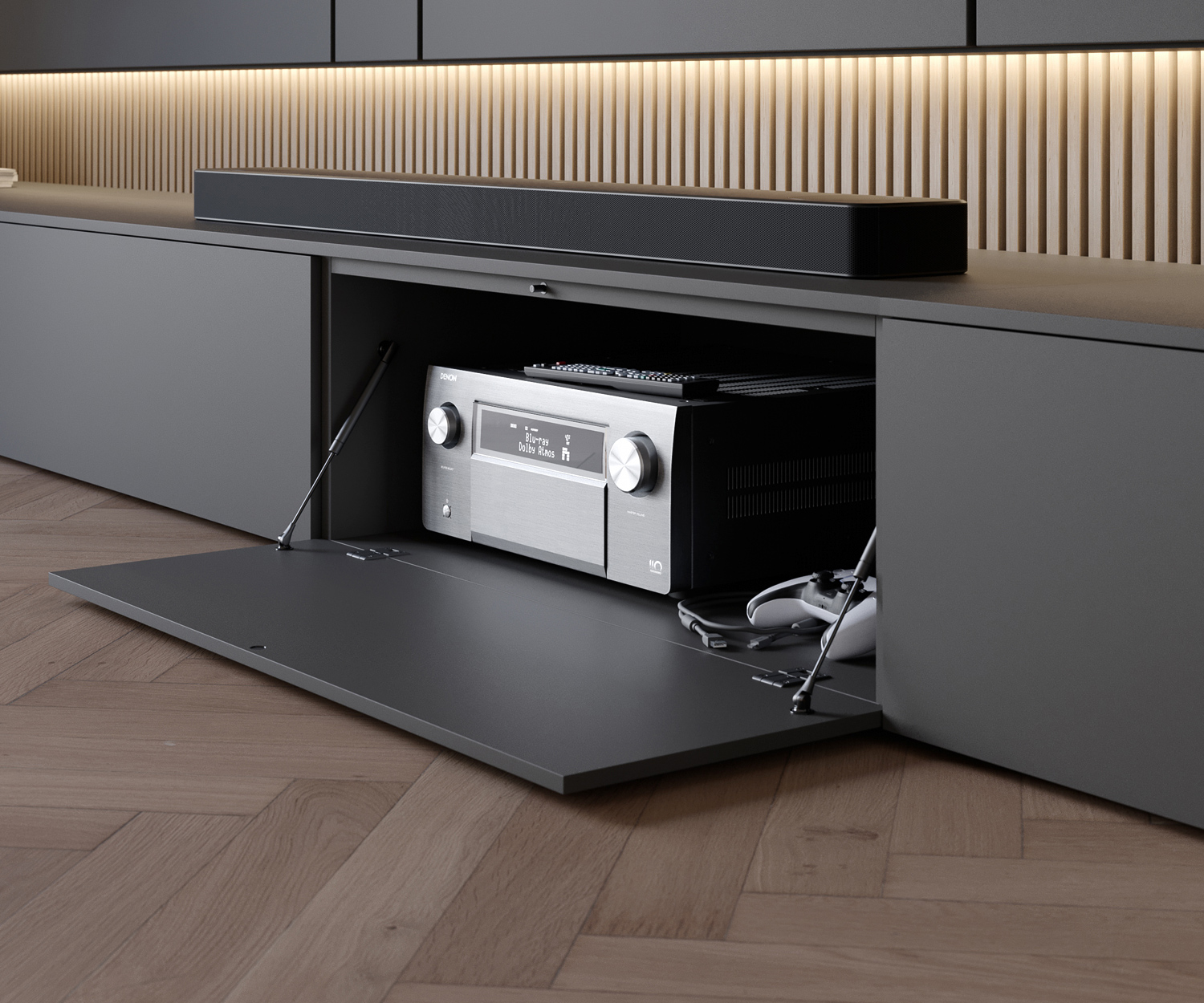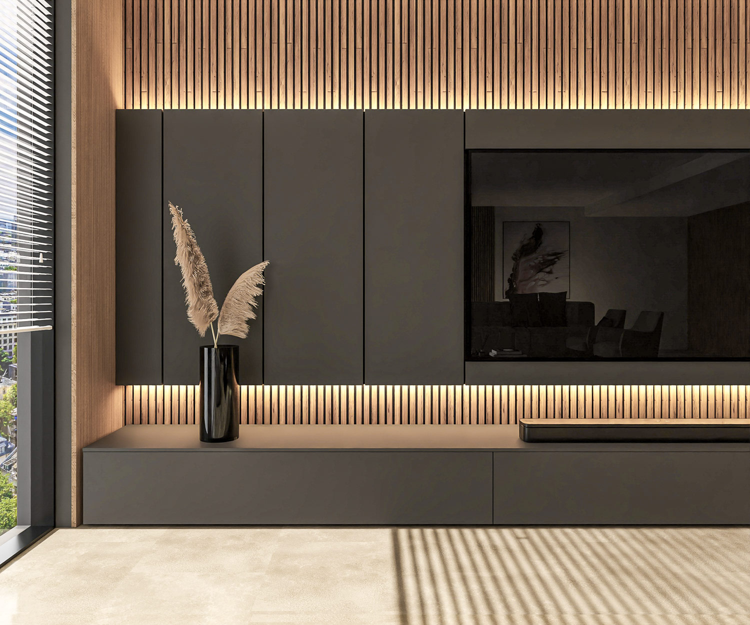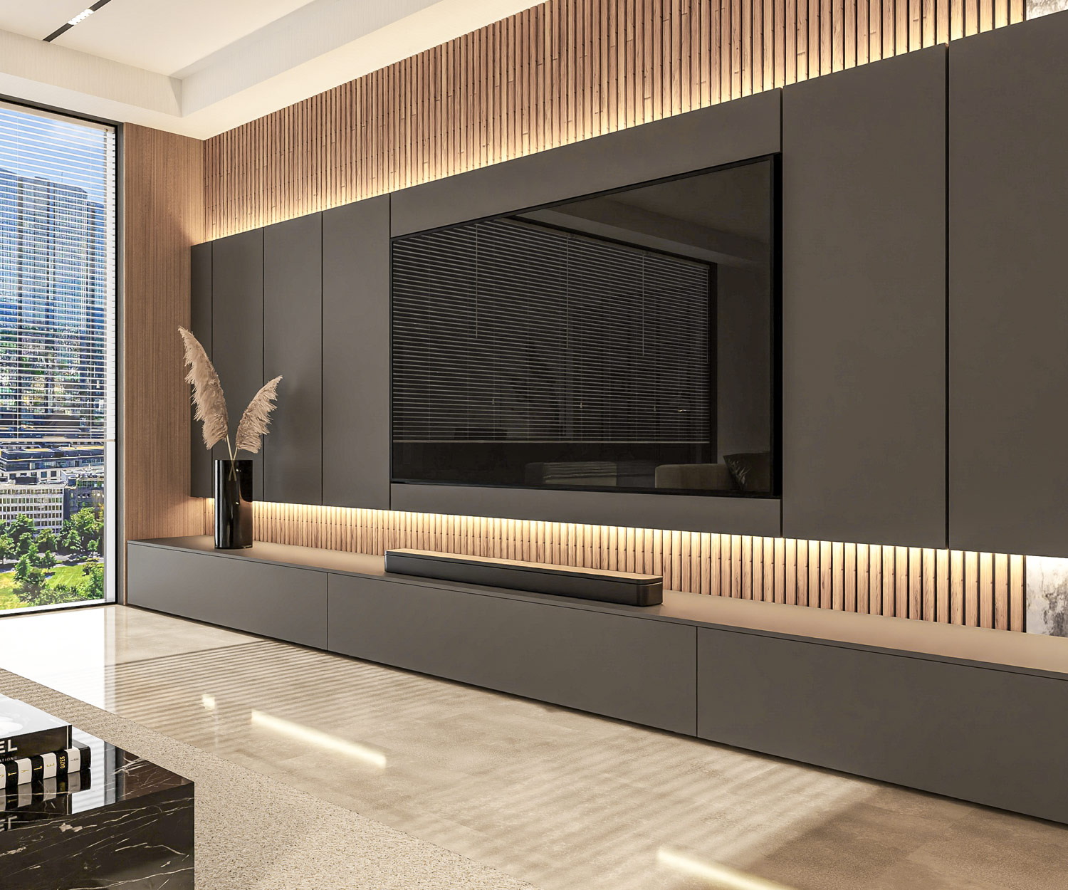 - Panneau TV : Panneau large (300 cm), parfait pour les téléviseurs de plus de 65 pouces.