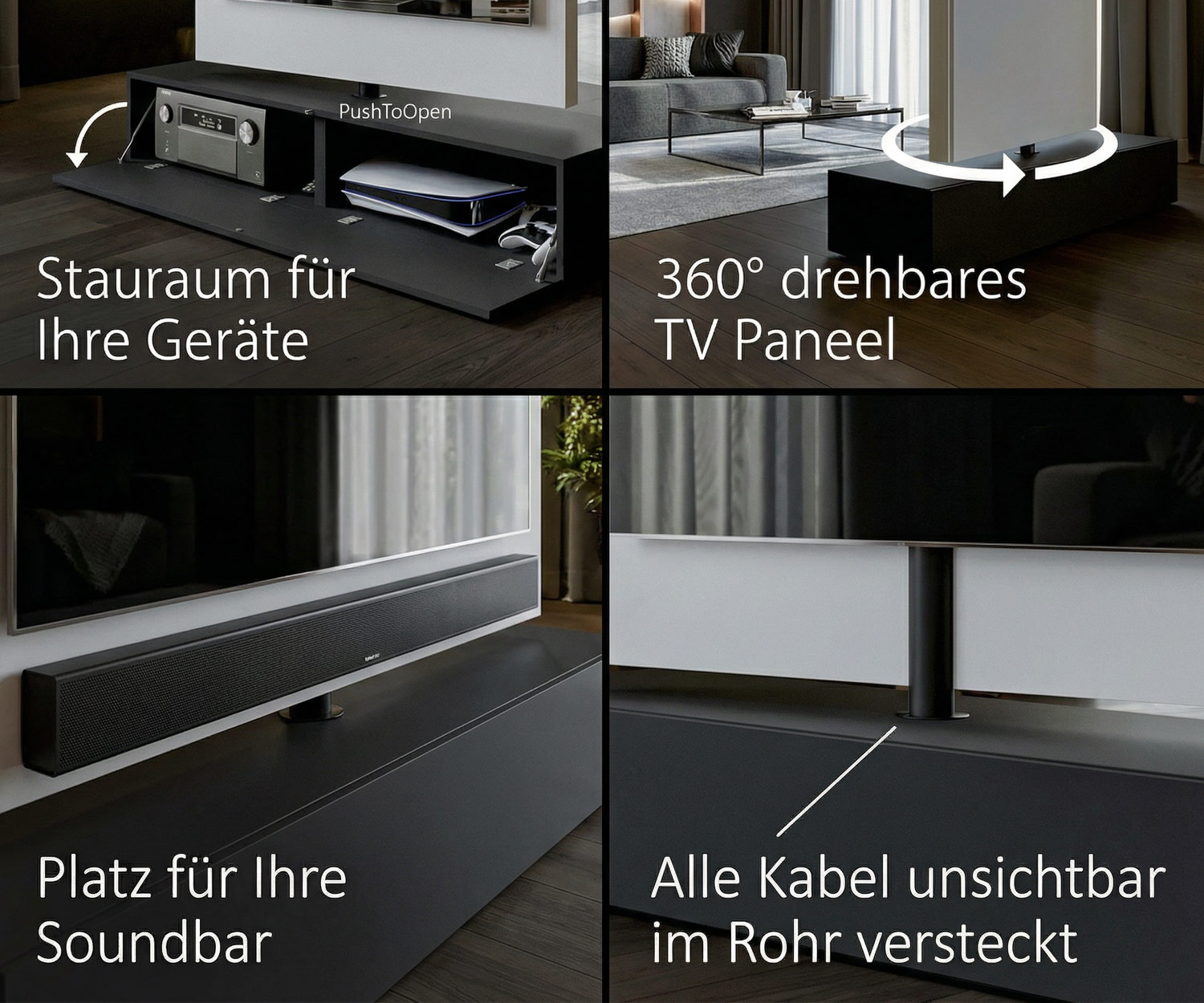 Für unser neues Apartment haben wir genauso einen Schrank gesucht, der die Kabel vom Fernseher unsichtbar macht. Die Drehfunktion ist einfach wunderbar und alle unsere Freunde sind begeistert. Lieferung und Qualität sind sehr gut. Wir haben schon öfter bei Livarea gekauft und sind sehr glücklich.