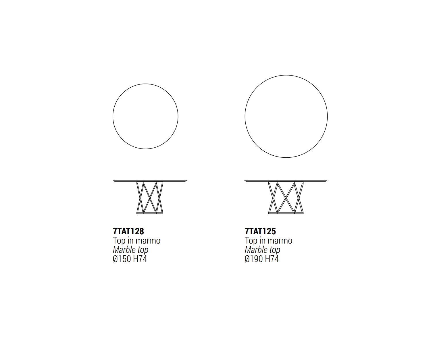 La table de salle à manger Tatlin Marmor Design de Marelli est disponible dans les largeurs suivantes :
