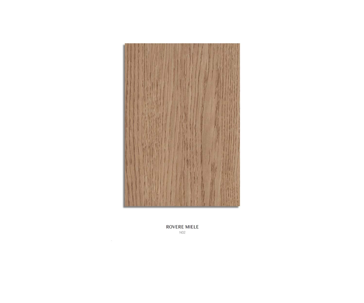 Pour la version highboard avec portes en verre, le panneau arrière ainsi que les étagères à l'intérieur sont plaqués en chêne Miele 02. La vitrine en verre est livrée avec 3 LED horizontales dans l'élément d'armoire, 24 V 3000K (transformateur inclus). La version Highboard avec portes en verre L 126 cm comprend en plus 4 tiroirs intérieurs en placage bois.