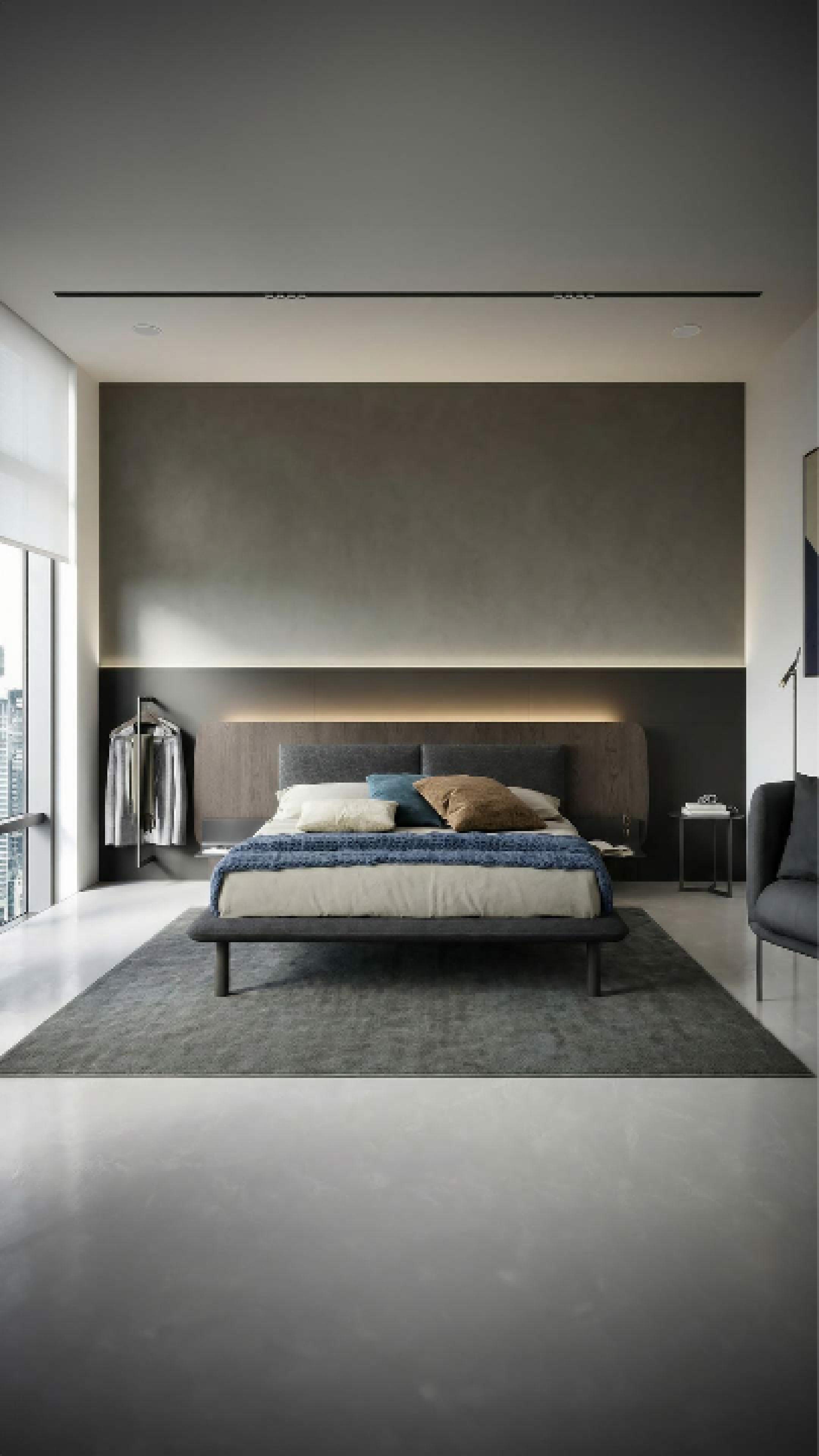 Le tour de lit rembourré complète l'ensemble et crée une atmosphère chaleureuse dans la chambre à coucher. Cette combinaison de fonctionnalité et d'exigence esthétique fait de ce lit un objet luxueux qui attire tous les regards.