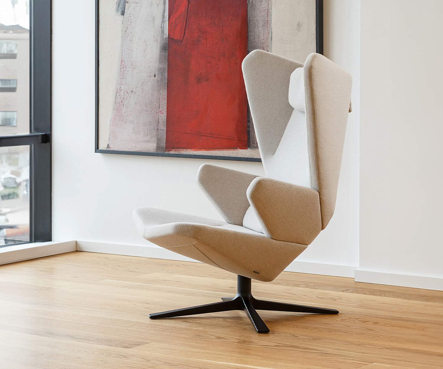Tous les modèles Trifidae Designer disposent d'une position d'assise légèrement inclinée qui permet au corps de se détendre et de se positionner correctement. Par rapport au fauteuil Trifidae traditionnel, le Lounge Chair et le fauteuil à oreilles ont un dossier surélevé avec un oreiller. Pour une meilleure isolation de l'environnement, le fauteuil à oreilles a des flancs latéraux, les oreilles, qui réduisent considérablement le bruit de fond.