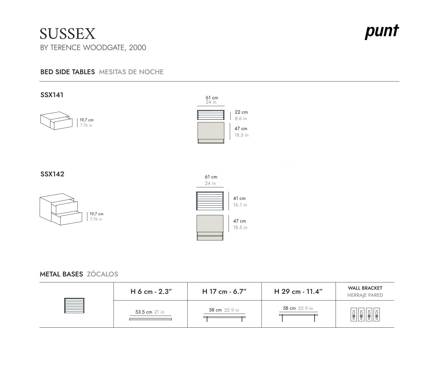 La table de nuit design Punt Sussex existe dans les dimensions suivantes :