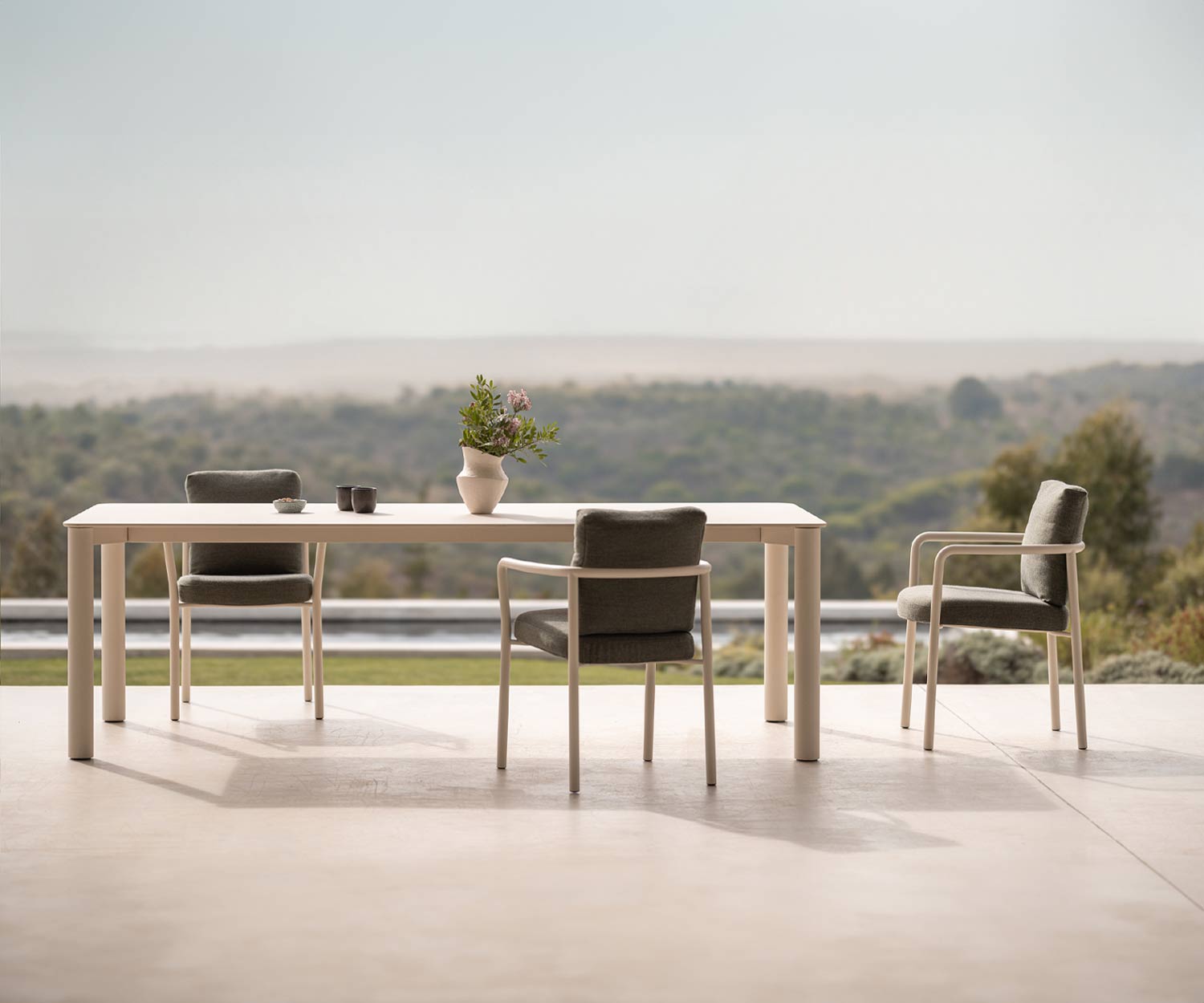 Pour un ensemble harmonieux, la chaise rembourrée Kori Outdoor se combine idéalement avec d'autres meubles de la collection Kori : la table à manger Kori Classic à l'élégance traditionnelle, la table de jardin Kori Flex au look iconique ou le fauteuil Kori Lounge pour des heures de détente en plein air.