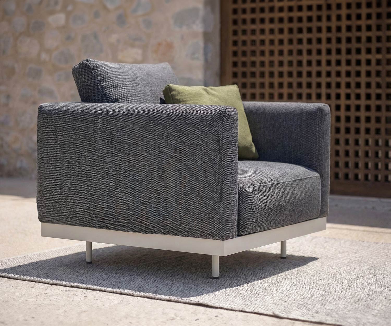 Mit ihrem modernen, geradlinigen Design und den luxuriösen Polsterkissen sind der Dongo Lounge Sessel und die Premium Sonnenliege die perfekte Wahl für anspruchsvolle Terrassen und individuelle Gartenlounges.