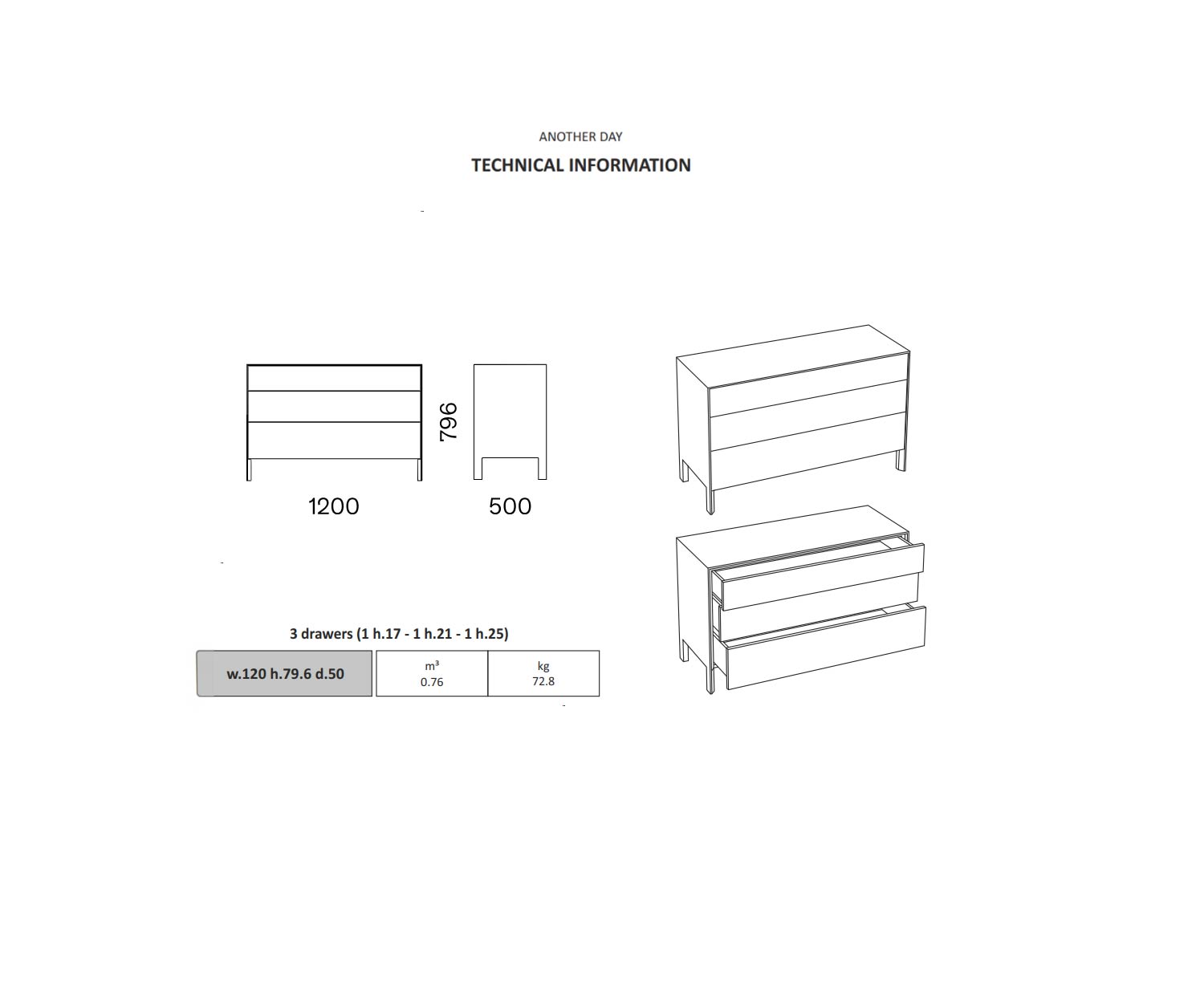 B 120 cm / H 79 cm / D 50 cm