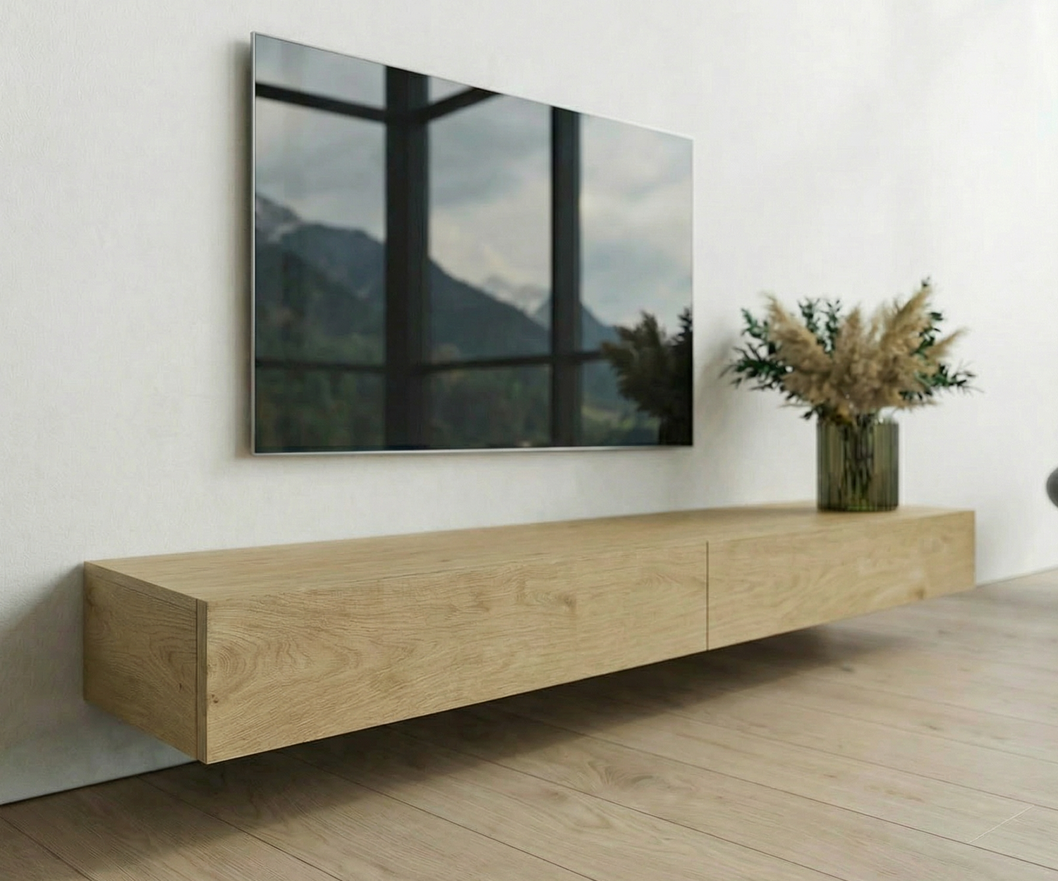 Livitalia Houten lowboard configurator wand 180 cm 24 cm 46 cm licht eiken