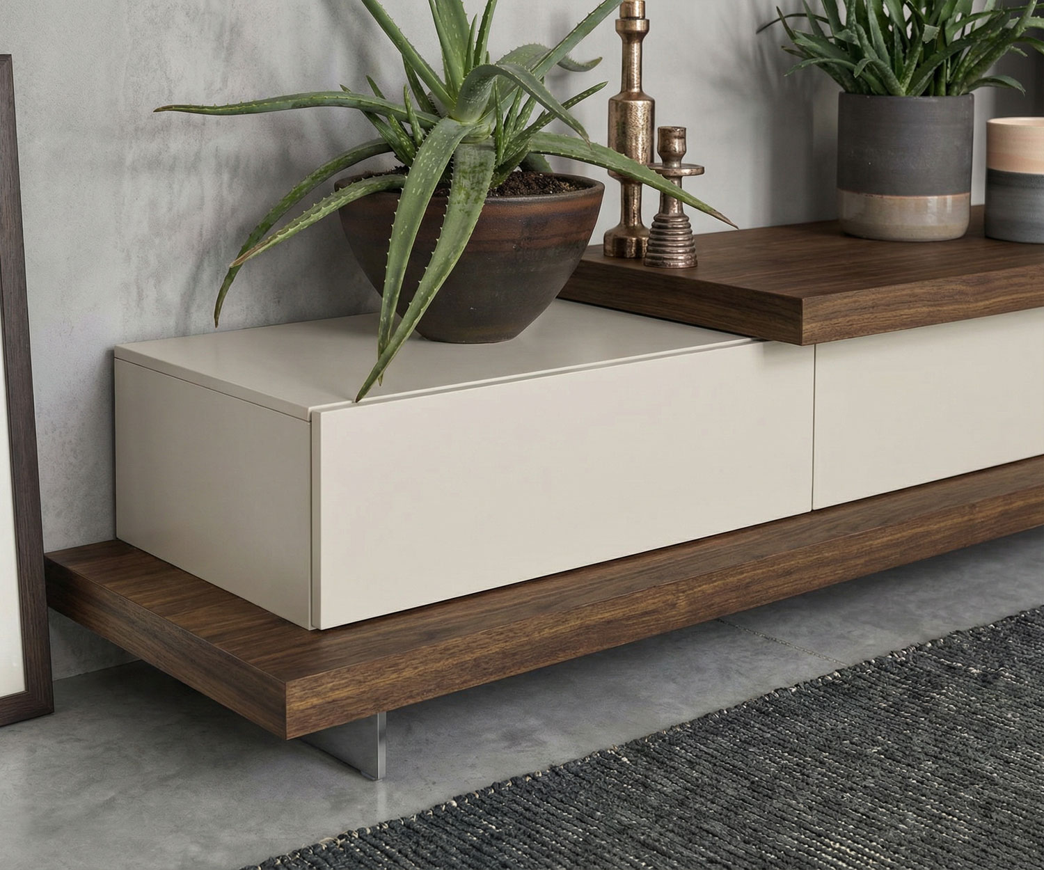 De Livitalia C52 is een speciaal design wandmeubel uit Italië met een geïntegreerde TV-kolombevestiging. Er kan een flatscreen-tv tot 55 inch aan worden opgehangen. De kabels worden onzichtbaar langs de kolom naar het open mediavak geleid. Afhankelijk van de grootte van de tv kan de beugel naar links of rechts worden gedraaid.