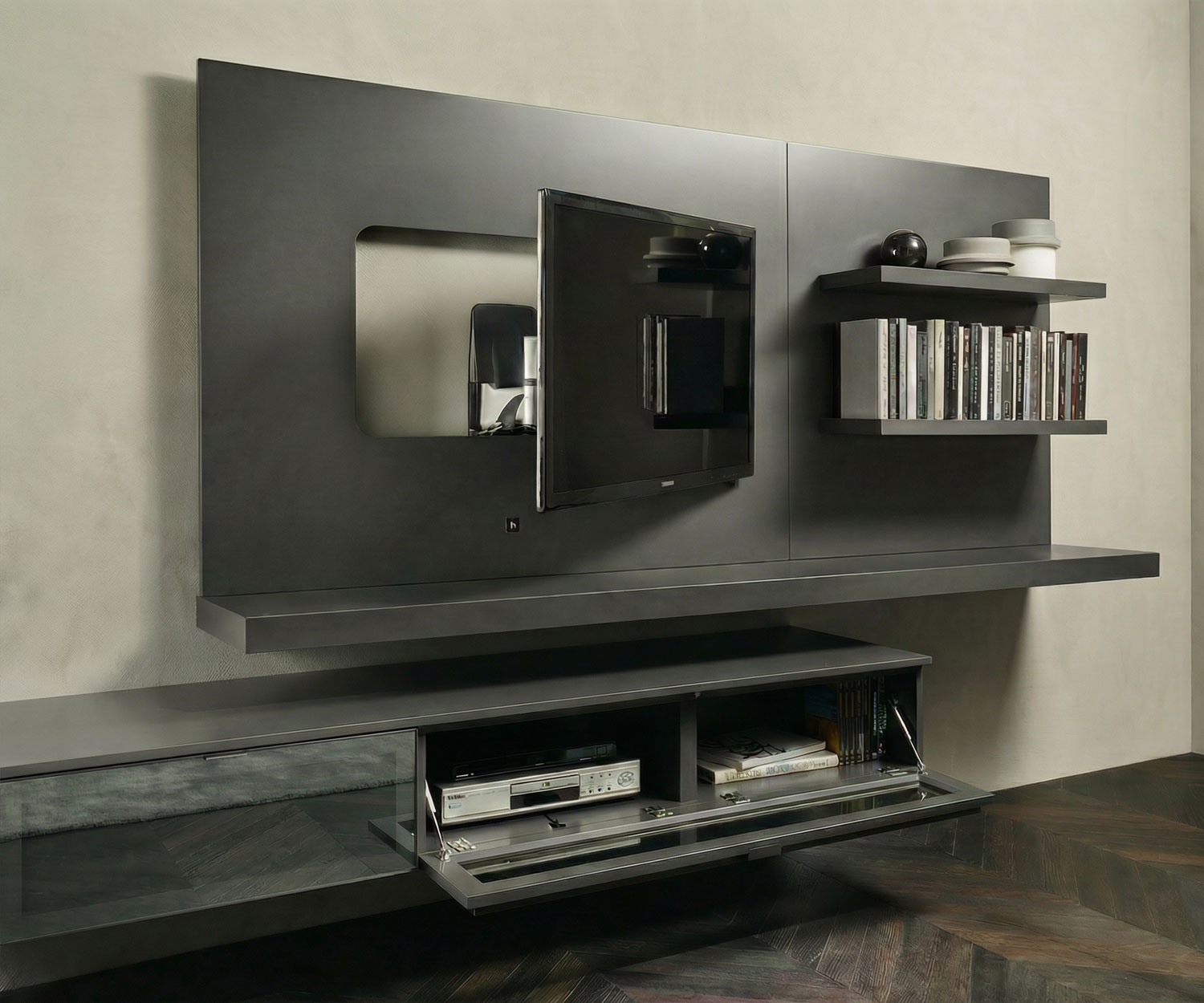 Als je op zoek bent naar een design wandmeubel in antraciet met veel opbergruimte en een geïntegreerde tv-beugel, dan is het Livitalia wandmeubel C49 een goed alternatief.