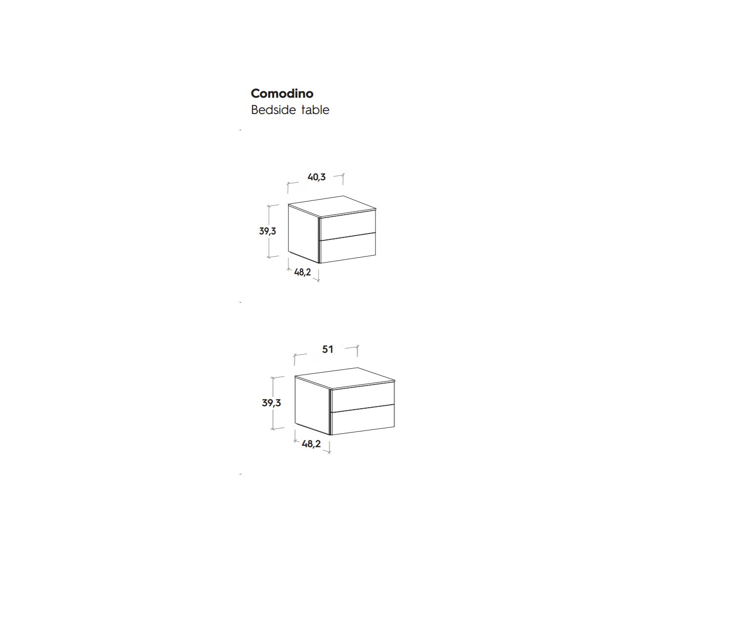 Livitalia Het Design Atena nachtkastje is verkrijgbaar in de volgende afmetingen: