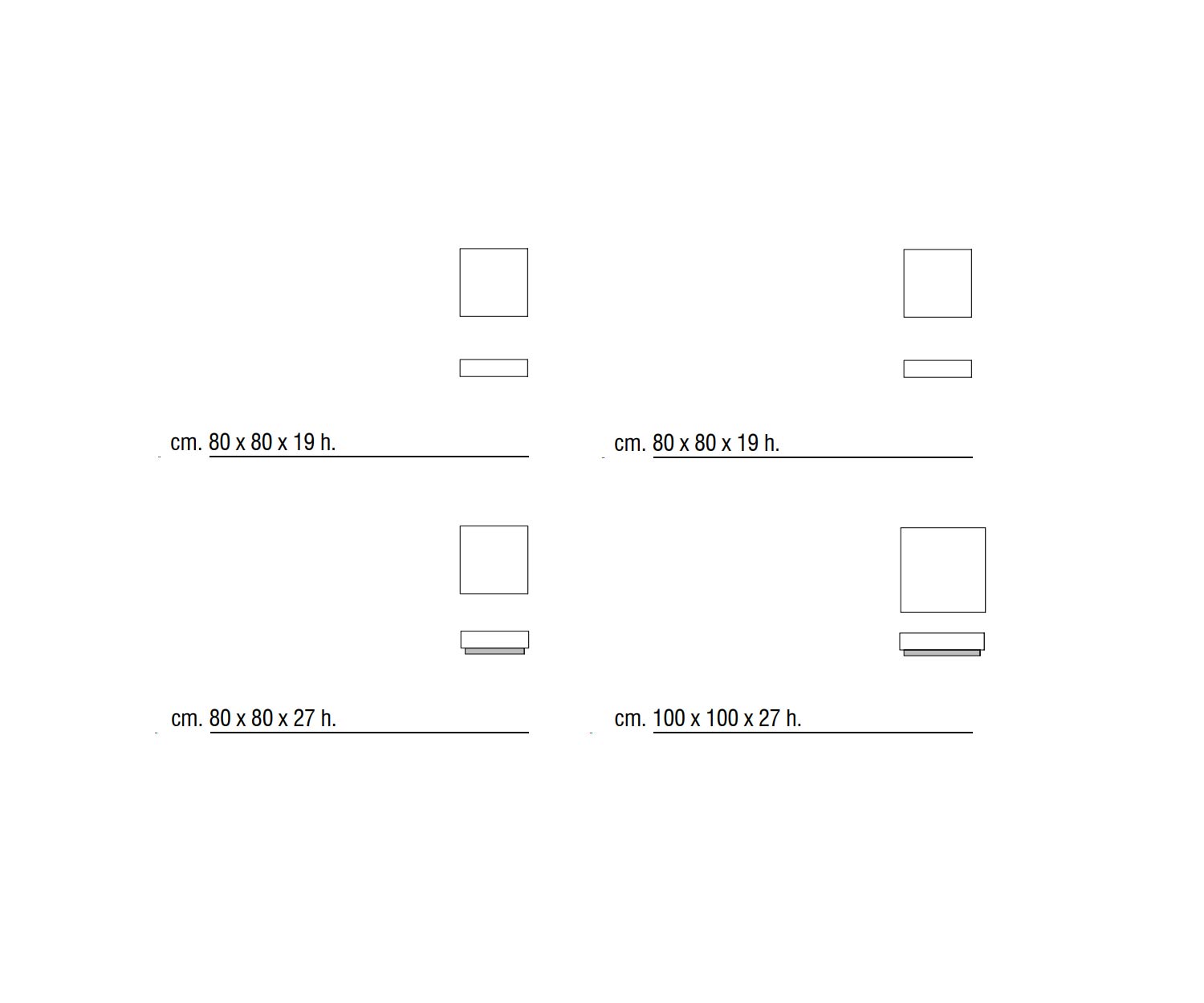 100 x 100 cm / H 19 cm (zonder onderstel)
