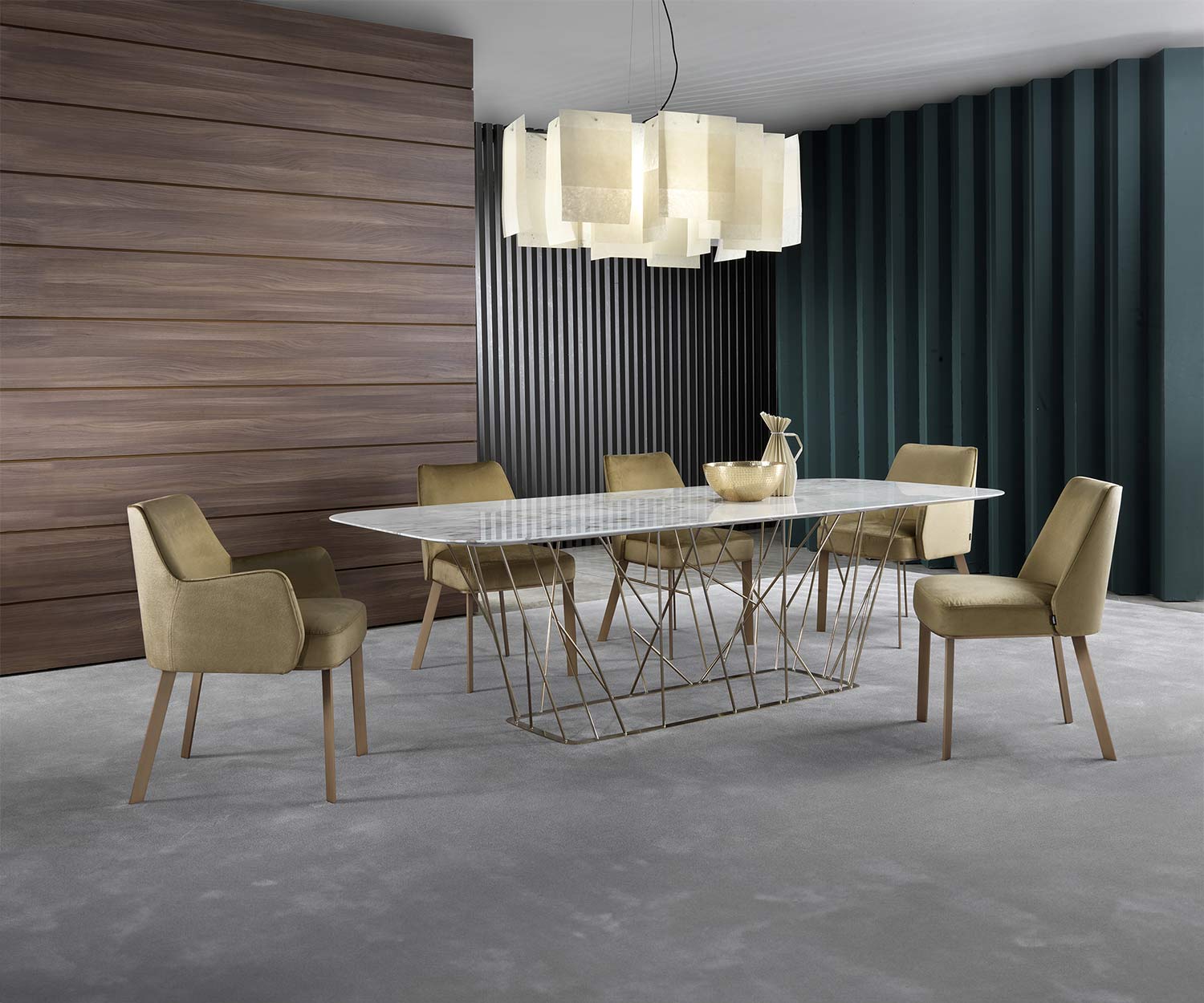 De Marelli Twig marmer design eettafel ontwikkeld door Eleonora Pozzi verwent de kijker met een uitzonderlijk bewerkt tafelblad van marmer of eikenhout. Iedereen die op zoek is naar een zeer speciale tafel voor de hoogste eisen zal in dit meubelstuk vinden wat hij zoekt. De tafel staat op een metalen frame. Deze tafel wordt individueel voor je geproduceerd in Italië.