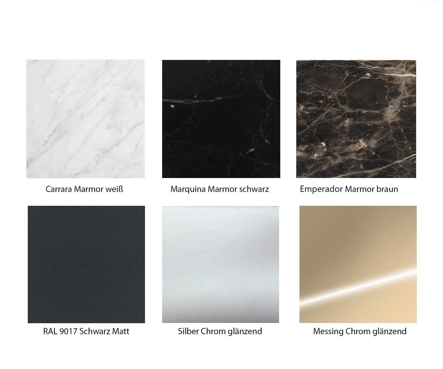 Het blad van de Twig salontafel is verkrijgbaar in 5 kleuren: Carrara Marmer Wit, Marquina Marmer Zwart, Emperador Bruin, Calacatta Goud Marmer of Zwart Goud Marmer. Het frame is verkrijgbaar in RAL 9017 matzwart, zilverchroom, zwartchroom of glanzend goudmessing. We bieden twee verschillende verzegelingen voor je marmeren tafel: De ene is een X-Stone verzegeling en de andere is een polyester coating.