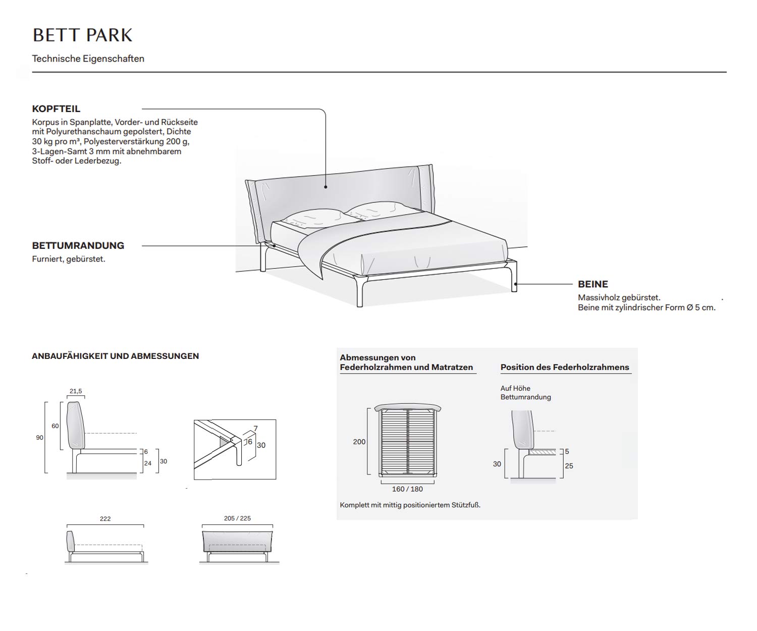 Het bed Novamobili Park is verkrijgbaar met 2 matrasbodems: