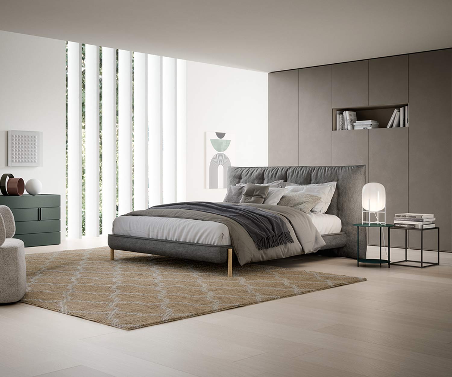 Het bed Novamobili Tufte betovert met zijn opvallende elegantie bij het zien van de slanke poten en het gestoffeerde hoofdbord met geraffineerd verticaal quiltwerk aan de zijkanten. Dit bed wordt exclusief voor jou geproduceerd in Italië.