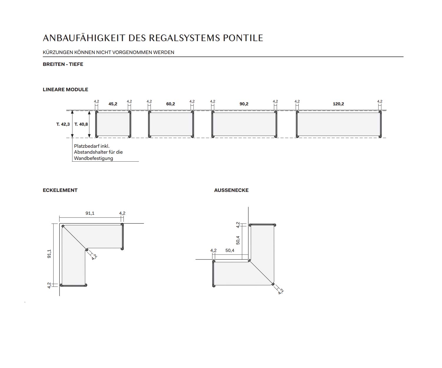 Het schap kan worden gevarieerd in breedte en hoogte (zie schets voor mogelijke afmetingen). Op verzoek kunnen gesloten en open dozen worden geïntegreerd.
