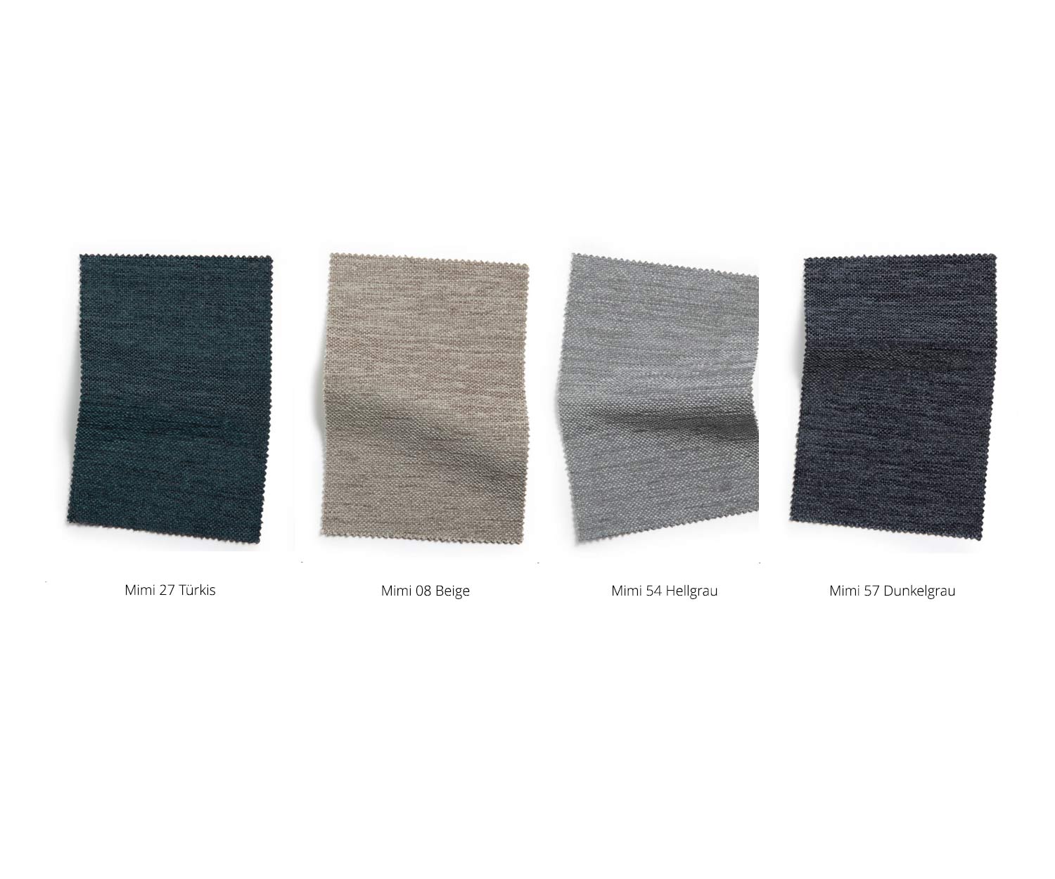 Afhankelijk van de slaapkamerinrichting kan het Novamobili Seeyou design gestoffeerde bed in 4 kleuren worden uitgevoerd. Keuze uit verschillende kleuren: Turquoise, crème beige, lichtgrijs en donkergrijs.