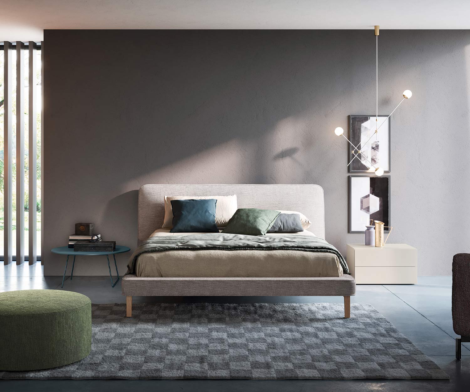 Afhankelijk van de benodigde ruimte is het gestoffeerde bed Novamobili Seeyou verkrijgbaar met een matrasbodem van 160x200 of 180x200 cm.