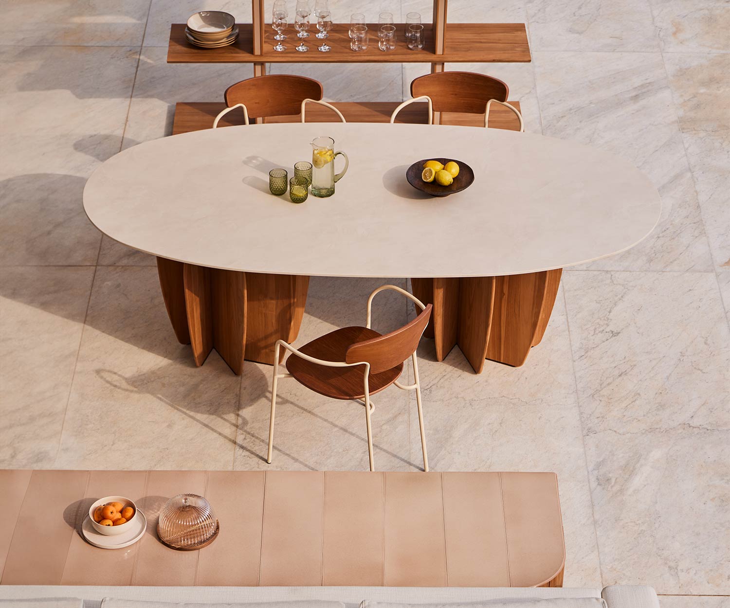 Punt De Coral eettafel is een exclusief ontwerp uit de nieuwe Outdoor collectie, ontworpen door Arik Levy.