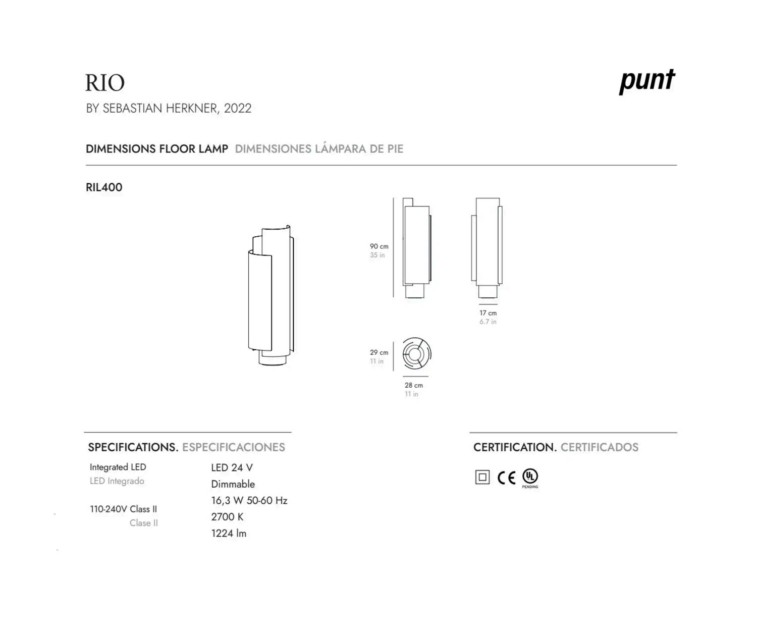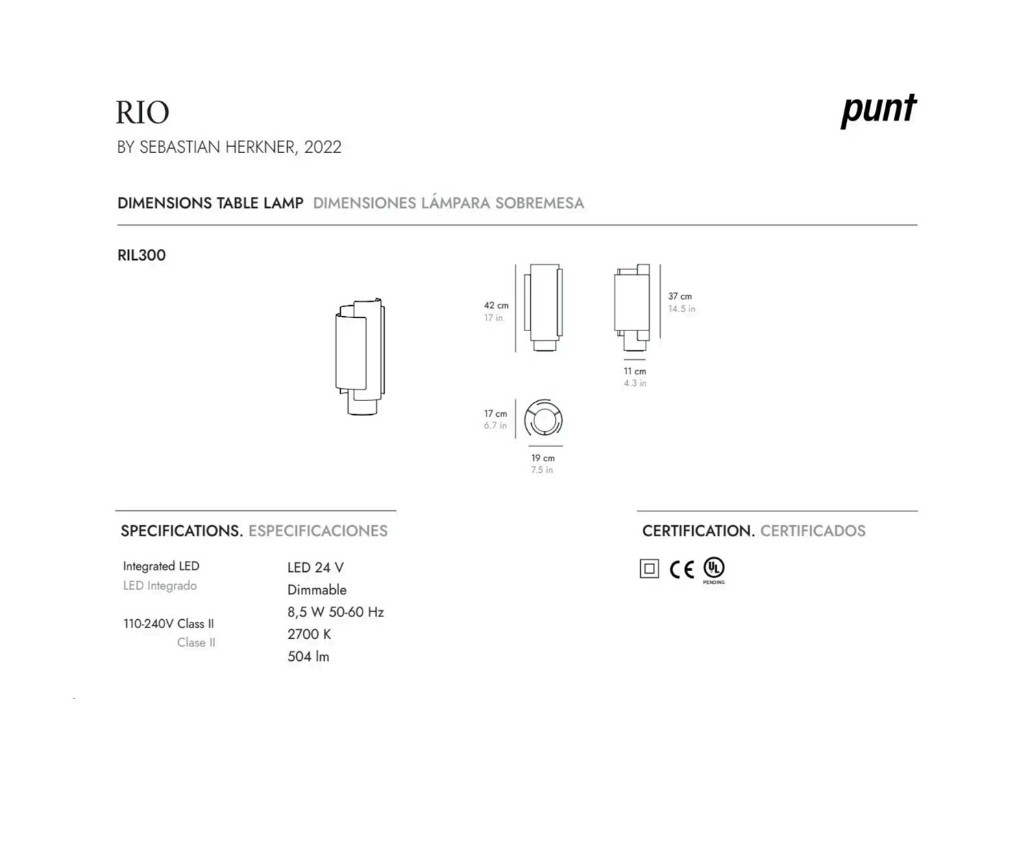 D e Rio-lamp is verkrijgbaar met geïntegreerde LED 24 V en is dimbaar .De schakelaar wordt rechtstreeks op de kabel aangesloten en kan ook als voetdimmer Vervangbare stekkers en de installatiehandleiding worden bij de lamp meegeleverd