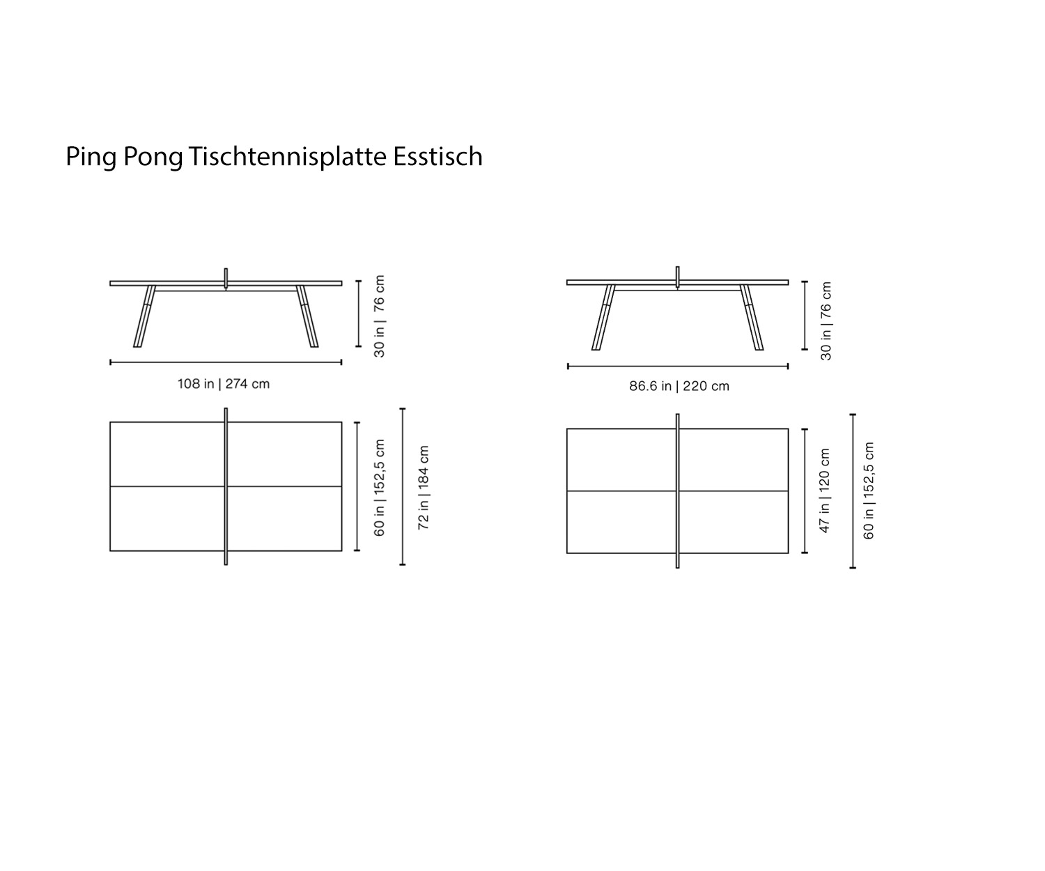 Dankzij de comfortabele tafelhoogte van 76 cm kan de outdoor pingpongtafel ook gebruikt worden als tuintafel. De grootste versie biedt gemakkelijk plaats aan 10 personen.
