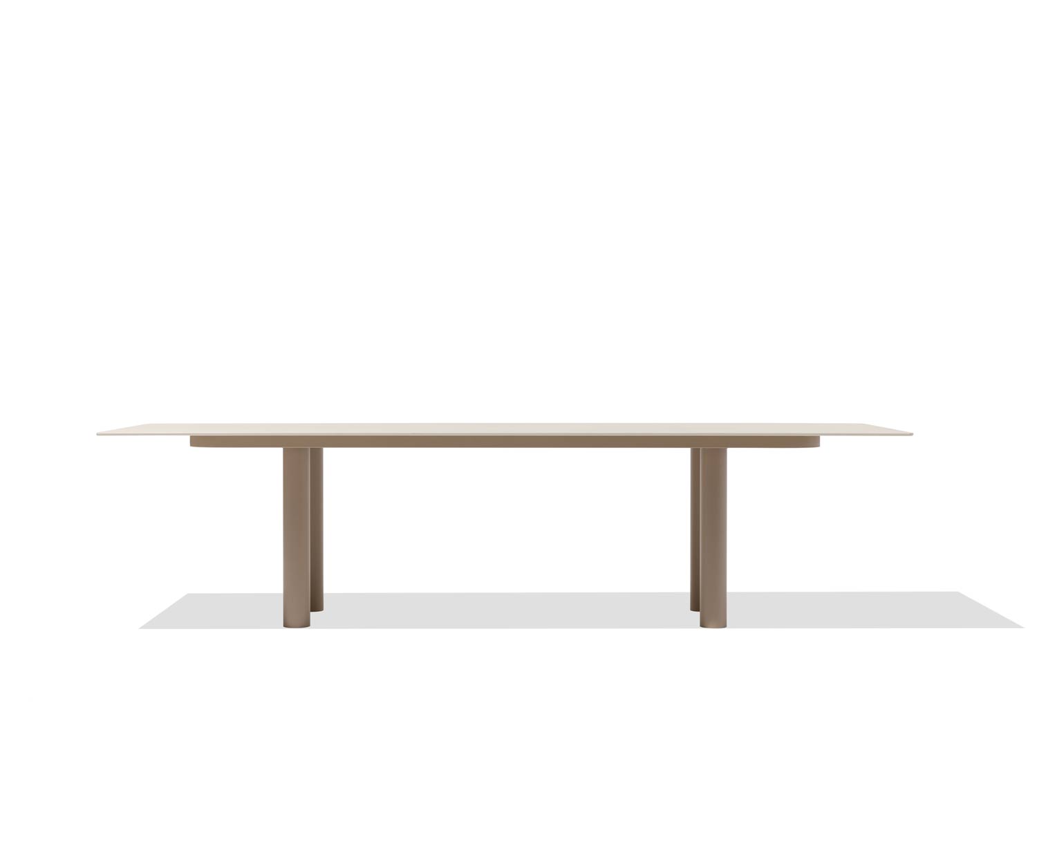 Andere kleuren zijn verkrijgbaar op aanvraag. De foto's tonen de Kori tuintafel met een frame in latte beige en het keramische tafelblad in oestersteen.